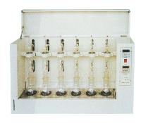 本公司引进脂肪测定新技术,结合我国国情研制而成。设计合理、性能稳定、准确度高、操作省力、省时,测定结果符合国家(GB5512-85)标准,各项指标达到较高水平。该仪器是食品、油脂、饲料等行业测定脂肪的优质设备。 本仪器根据索氏抽提原理、用重量测定方法来测定脂肪含量。即在有机溶剂下溶解脂肪,用抽提法使脂肪从溶剂中分离出来,然后烘干,称量,计算出脂肪含量。 本仪器主要有加热抽提,溶剂回收和冷却三大部分组成。操作时可以根据试剂沸点和环境温度不同而调节加热温度,试样在抽提过程反复浸泡及抽提,从而达到快速测定目的。 技术指标 1、测定范围:含油量在0.5%-60%范围内的粮食、饲料、油料及各种脂肪制品 2、测定样品:6个/每批 3、抽提时间可调到时报警 4、工作电压:交流220V 5、电加热功率:800W 6、控温范围:室温~100℃ 7、外型尺寸:860×200×550mm3 8、重量:20kg